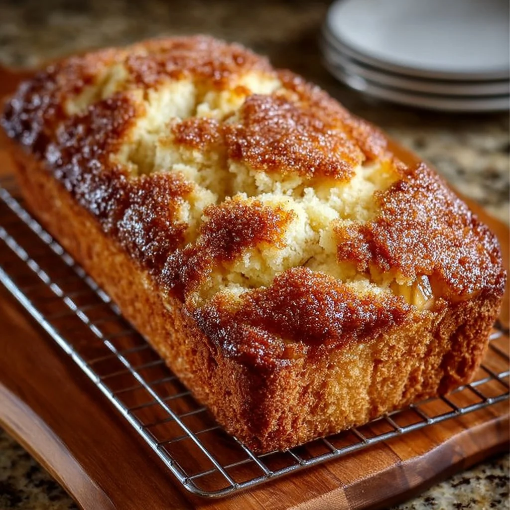 Creamy, warmly spiced, and delightfully tender — Apple Pie Bread brings everything you love about a classic apple pie into an easy, sliceable loaf. Picture a golden crust giving way to chunks of apple and pockets of sweet pie filling, finished with a cinnamon-sugar top that crackles when you slice into it. Fun fact: quick breads like this one became popular because they deliver dessert-level flavor with minimal effort — no rolling crusts, no fuss.