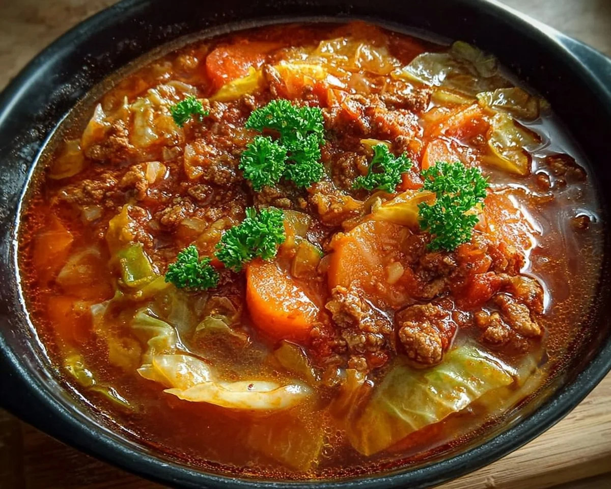 What’s in a name? Cabbage Roll Soup is basically the soul of a stuffed cabbage dinner boiled down to a bowl-friendly form. Why call it that — because it tastes just like a cabbage roll without the rolling; clever, right? Ever wondered why people say “the way to a man’s heart is through his stomach”? This soup proves that old saying with every spoonful: rich beef, tangy tomato, and tender cabbage hit all the comfort-food notes. Picture the cozy ritual of unwrapping a stuffed roll, then imagine all of that in a steaming, easier-to-eat broth. Curious yet? Give it a try and see why people joke it’s the lazy cook’s best friend.