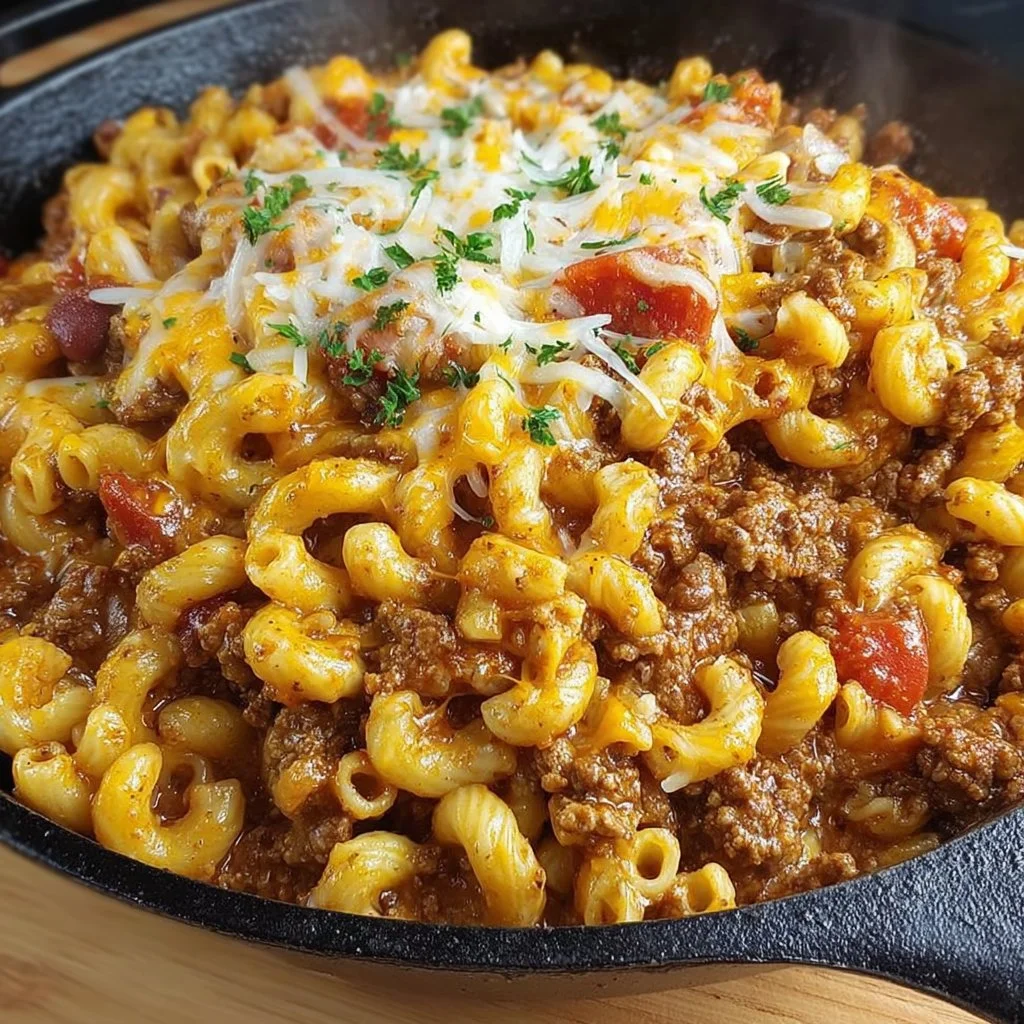 Is it chili or macaroni? Both. It’s comfort food diplomacy in action. People joke that “the way to a man’s heart is through his stomach,” and this skillet proves it for everyone — hearts and stomachs alike. Try it and see why it earns its cozy reputation.