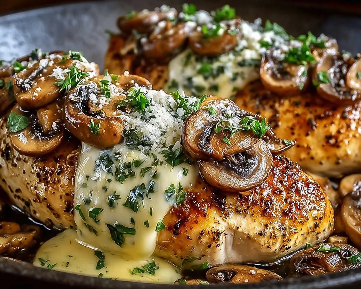 - Irresistible comfort: The main highlight is the creamy, melty cheese combined with savory garlic-butter mushrooms that keep the chicken moist and flavorful. Every bite balances tender meat with gooey filling.