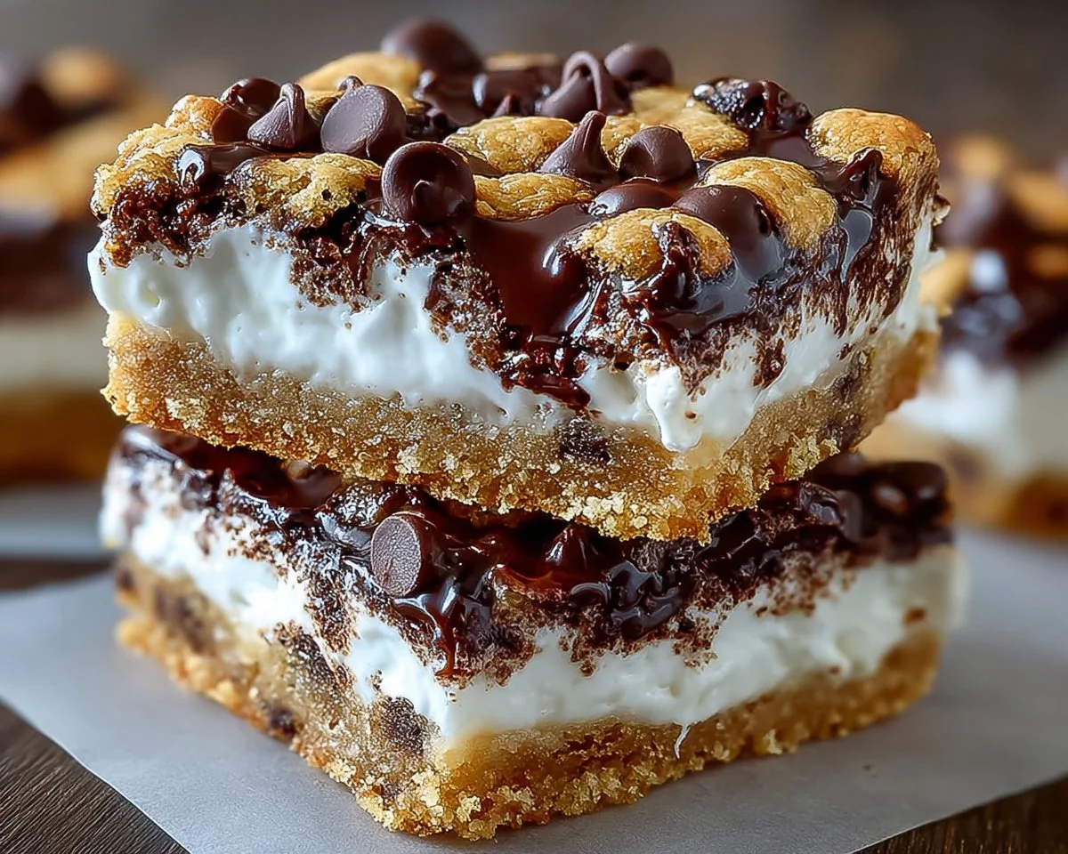 This recipe is straightforward and forgiving — no special equipment required. You’ll cream butter and sugars, fold in dry ingredients, bake a cookie slab, spread marshmallow crème, and finish with melted chocolate that sets into a glossy top. Total hands-on time is about 20 minutes, with 20–25 minutes baking and additional chilling or setting time. The standout element is that marshmallow layer: light, sweet, and delightfully gooey between crisp edges and a silky chocolate crown. For another take on cookie bars with ooey-gooey centers, see this take on chocolate chip cookie dough bars at chocolate chip cookie dough bars.