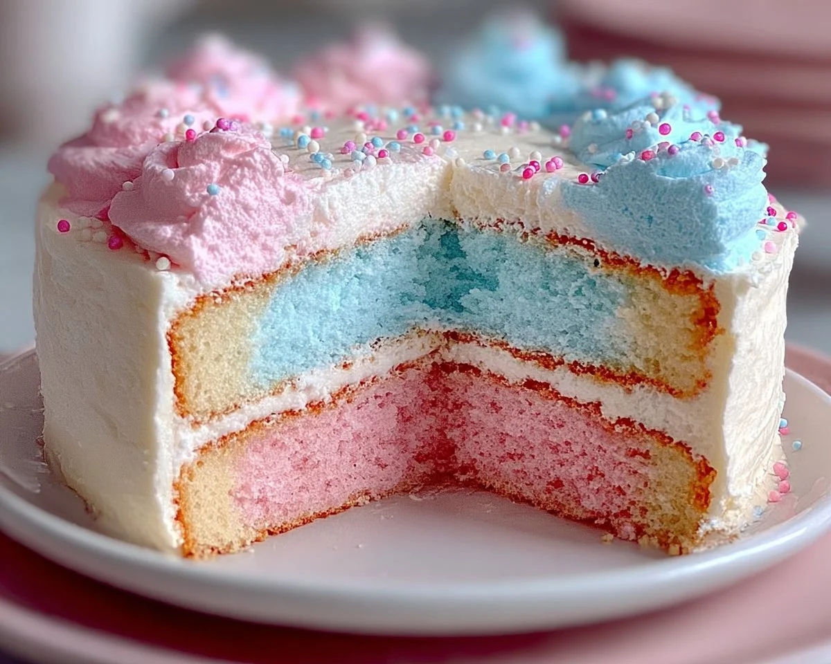 This cake comes together quickly and uses basic mixing techniques anyone can master. The texture is soft and moist with a light crumb. The standout element is the colorful marbled batter and the optional cotton candy-flavored frosting that delivers nostalgia in every bite. Preparation time is about 15–20 minutes, baking takes 25–30 minutes, and cooling plus frosting add another 20–30 minutes. Total time: roughly 1 hour to 1 hour 20 minutes.