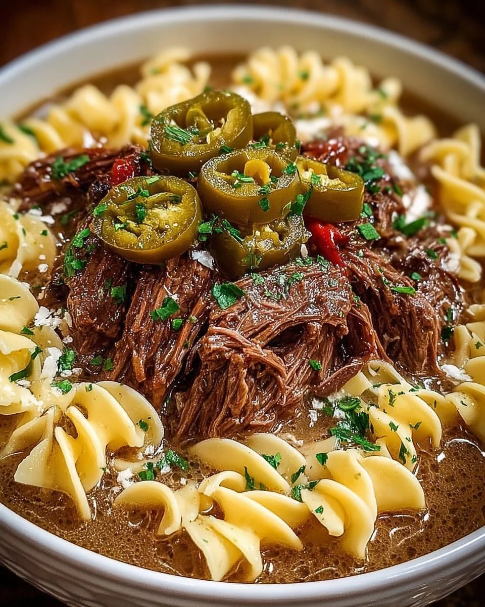 This recipe is simple to assemble: dump seasonings and peppers over a chuck roast, add broth, and let the slow cooker do the work. The beef becomes tender and shreddable, while the sauce reduces into a luscious coating for egg noodles. Prep takes about 10 minutes, cook time is 8 hours on low, and you’ll end up with silky texture and robust flavor that’s both kid-friendly and dinner-party worthy.