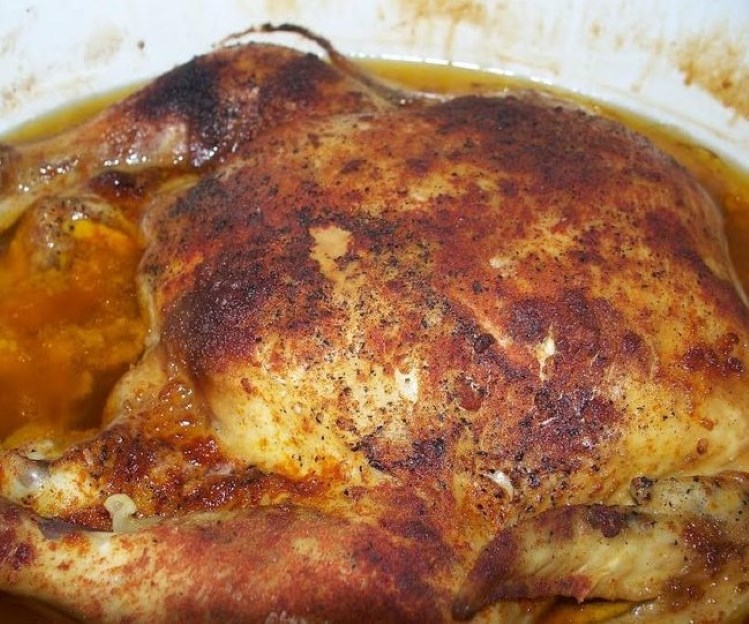 Juicy Garlic Roasted Chicken served with herbs and spices