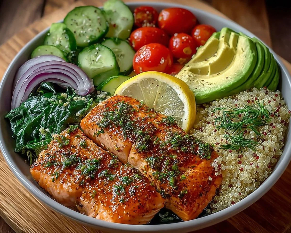 Creamy avocado, flaky lemon-herb salmon, and nutty quinoa come together in a bowl that’s bright, satisfying, and surprisingly simple.