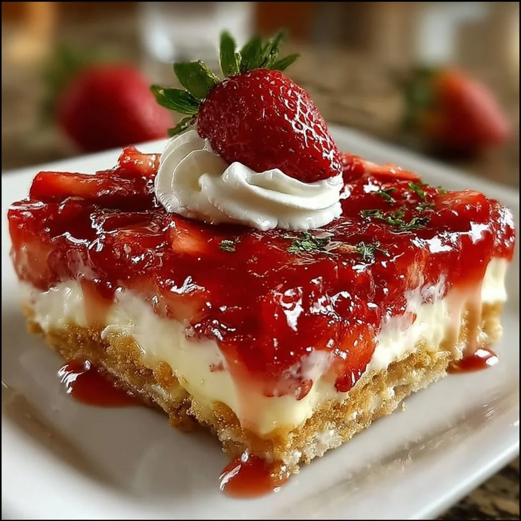 This No-Bake Strawberry Jello Lasagna is proof that memorable desserts don’t need hours or complicated techniques — just a few thoughtful layers and a short chill. It’s family-friendly, budget-smart, and perfect for summer gatherings or last-minute entertaining. If you want variations or inspiration from similar fan favorites, check out this creative take on the dessert at No Bake Strawberry Jello Lasagna- Strawberry Cheesecake … (https://omgchocolatedesserts.com/no-bake-strawberry-jello-lasagna/) and for another layered strawberry treat, see No Bake Strawberry Cheesecake Lasagna – Sugar Apron (https://sugarapron.com/2018/05/14/no-bake-strawberry-cheesecake-lasagna/). Give it a try, share a slice, and enjoy the smiles it brings.