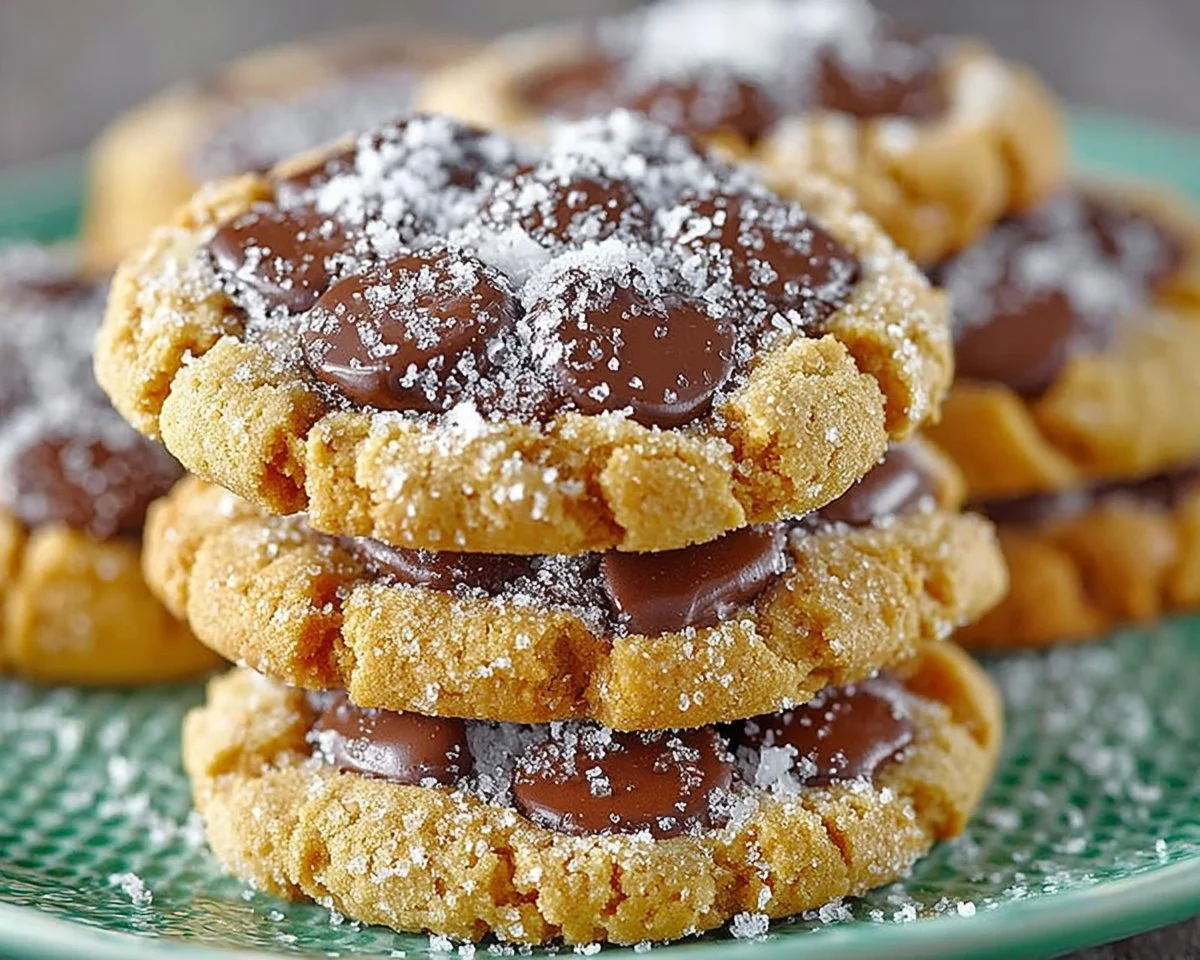 This recipe is straightforward: cream the fats and sugars, stir in the egg, fold in dry ingredients, shape, bake briefly, and finish with melted chocolate and powdered sugar. It’s fast, forgiving, and perfect for busy bakers — about 15 minutes prep, 8 minutes bake per batch, and a short cool-and-decorate step. The standout element is the warm chocolate spread that sets shiny and slightly crackly, adding a rich contrast to the peanut butter base.
