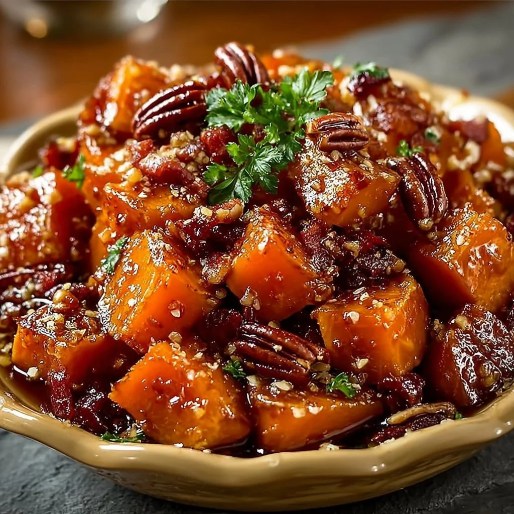 Savory Candied Yams with Bacon and Pecans