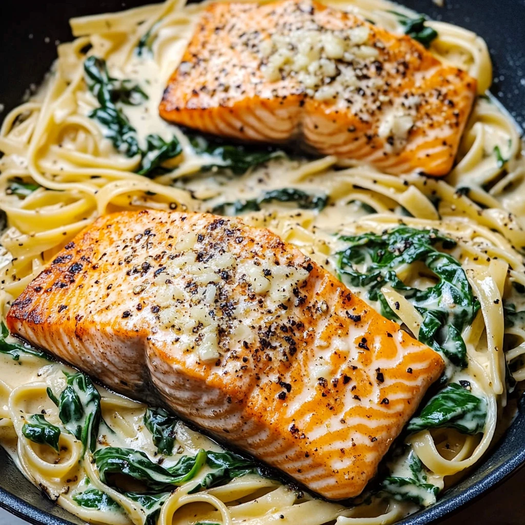 For another rich and creamy pairing idea, try serving it with garlic butter salmon with creamy spinach linguine for an indulgent dinner.